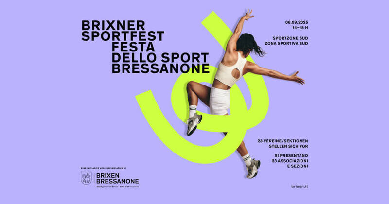 Am Samstag, den 6. September 2025, lädt die Stadtgemeinde Brixen gemeinsam mit 23 Sportvereinen von 14 bis 18 Uhr zur zweiten Auflage des Brixner Sportfestes