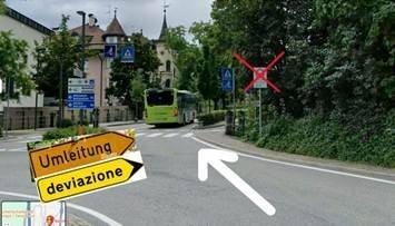 Für Fahrzeuge, die von Seitenstraßen oder Privateinfahrten in die BAHNHOFSTRASSE einfahren, sowie für jene, die von der Seite PFEFFERSBERG / FELDTHURNER STRASSE kommen, ist es nicht möglich, nach Norden (Richtung ZENTRUM) zu fahren. Es ist stattdessen notwendig IN RICHTUNG BAHNHOFSPLATZ – (IN ABWEICHUNG VOM DURCHFAHRTSVERBOT) - MOZARTALLEE – KREISVERKEHR VITTORIO-VENETO-STRASSE, fortzufahren UM DAS GEWÜNSCHTE ZIEL ZU ERREICHEN.