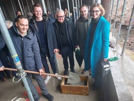 Am heutigen Vormittag (22.12.2023) fand auf der Baustelle der Sportzone Pfeffersberg in Pairdorf die Grundsteinlegung statt.