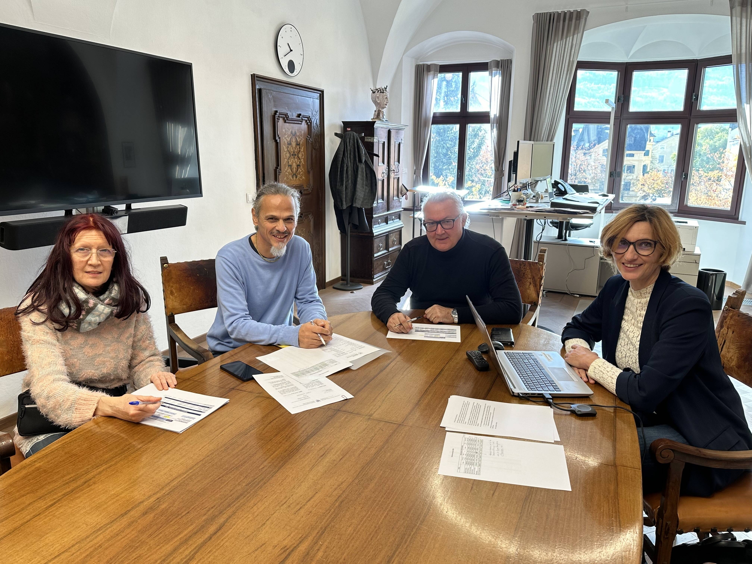 Foto v.l.n.r. Irene Masera, Dienststellenleiter Hermann Popodi, Vizebürgermeister Ferdinando Stablum und die zuständige Stadträtin Monika Leitner bei der Planung für die Seniorenurlaube 2024